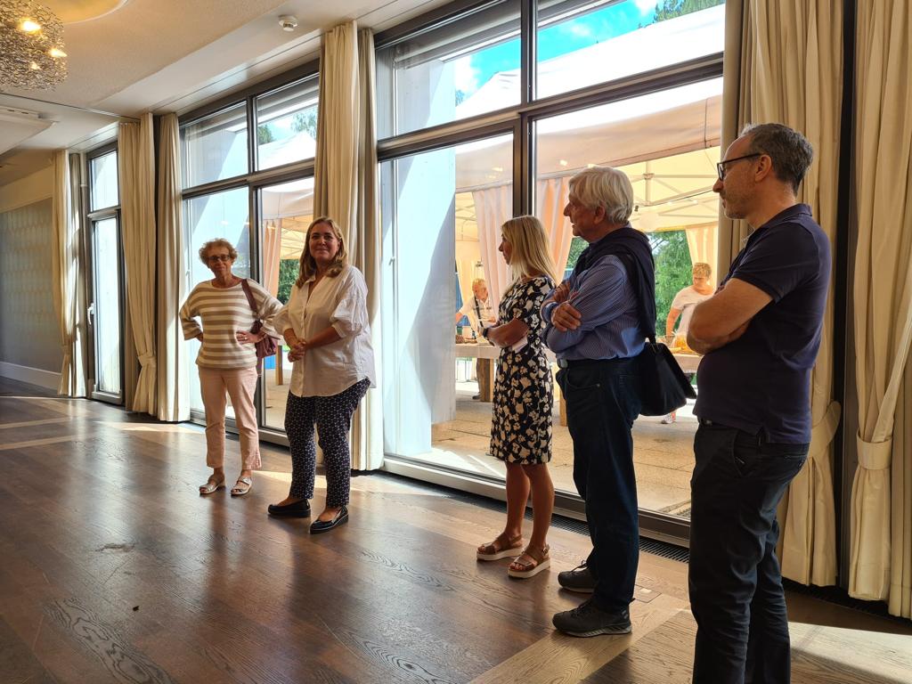 Die «Villa Hünigen» wurde als Siedlung bereits im 12. Jahrhundert in einer Urkunde von Papst Eugen III. erwähnt. 1588 erwarb die Familie von May das Schloss, in deren Besitz es über 330 Jahre verblieb. Im Schloss Hünigen gingen Menschen aus aller Welt ein und aus. Kein Zufall entstand hier die erste elektrische Bahn Europas, die Emmental-Thun-Burgdorf-Bahn. Claudia Zürcher vom Erzählbistro, die über viele Jahre das heutige Schloss-Hotel geführt hatte, wusste so manche spannende Geschichte zu erzählen.
