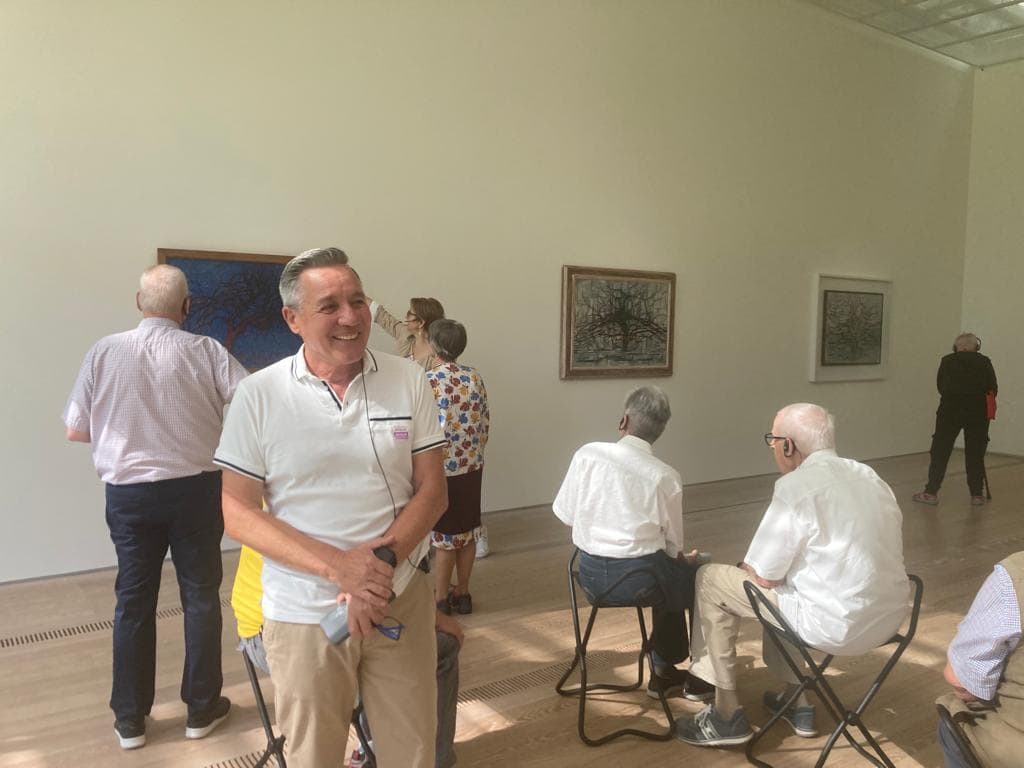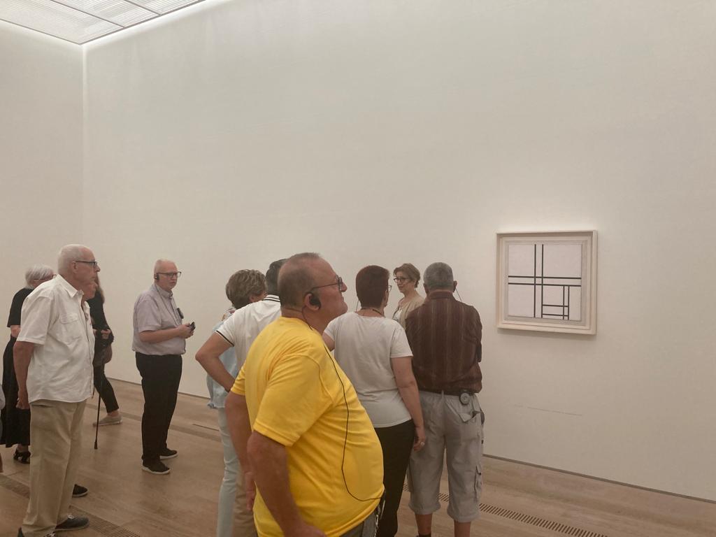 Rund 40 Freundinnen und Freunde des Erzählbistro, darunter viele neue Gesichter, besuchten gemeinsam die Ausstellung, diskutierten vor den Bildern und genossen anschliessend ein wunderbares Zvieri im Garten des Museums. Die Welschen und Deutschschweizer Gäste kamen gemeinsam ins Gespräch über Kunst und Kultur, aber auch über ihre eigenen Geschichten, die nicht immer so gradlinig verlaufen sind, wie die Linien in Mondrians Werk. Die Stimmung war ausgelassen und fröhlich und viele freuten sich bereits auf die verschiedenen gemeinsamen Busfahrten, die im Herbst vom Erzählbistro geplant sind.