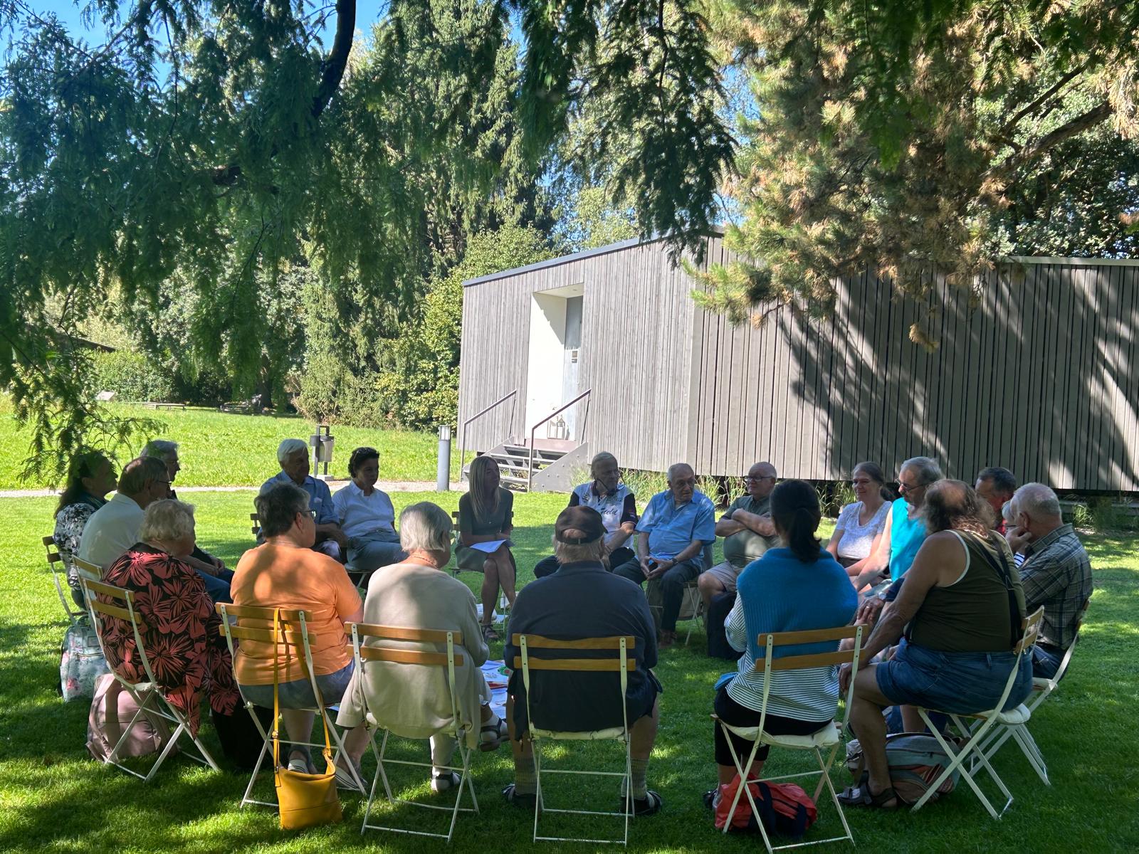 Unter fachkundigen Anweisungen von Charles und dank der Übersetzungskunst von Thomas schreibt parallel dazu eine Gruppe Anfänge der eigenen Biografie. Gedanken werden zu Sätzen du Sätze formen sich zu Lebensgeschichten. Zeitgleich findet unter einem grossen Baum ein ebenso grosses Erzählcafé statt.
