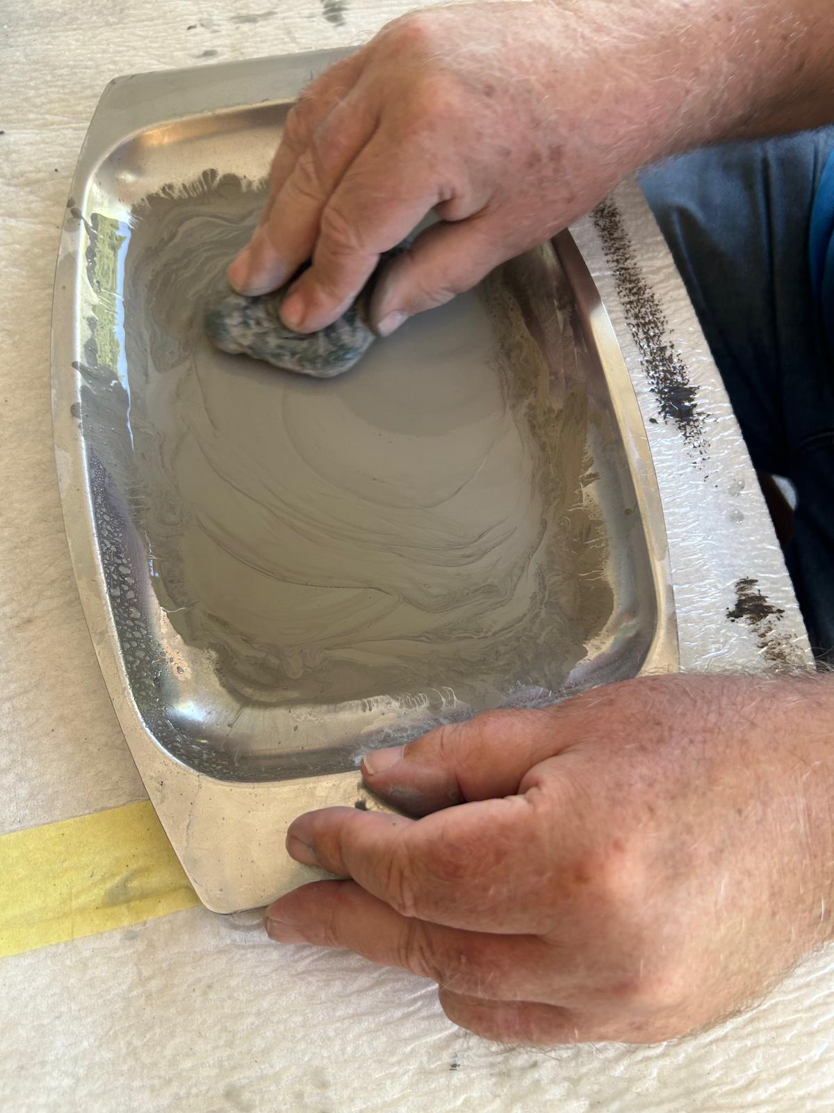 Plötzlich wird die Stille durch ein ganz eigenes Geräusch durchbrochen. Heute werden wieder Steine geschliffen. Sami zeigt, wie es geht. Hierfür ist er extra aus dem Tessin angereist. So werden aus groben Steinen kostbare Schmuck- und Glücksstücke, die man gerne auf sich trägt.