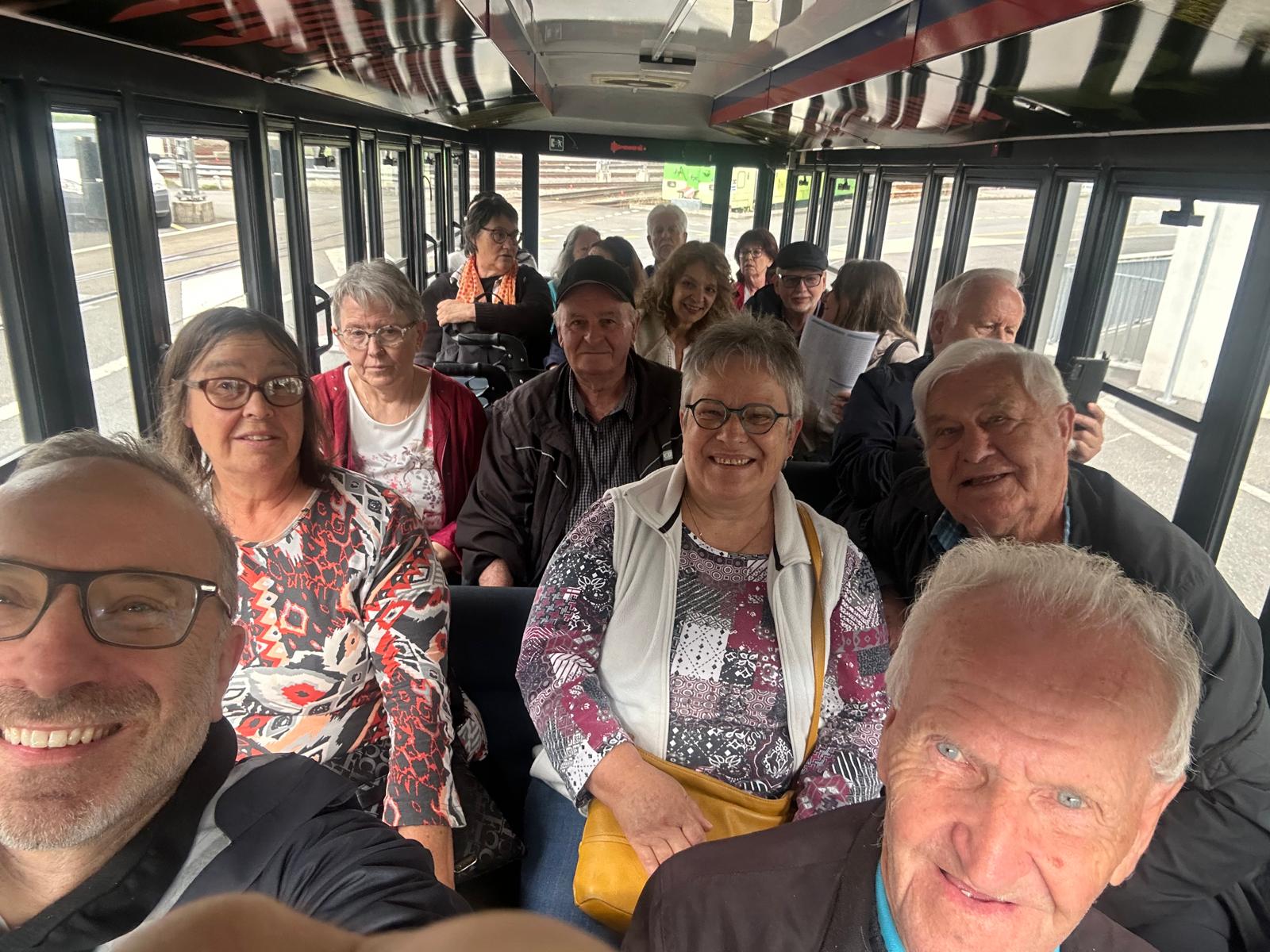 Im schmucken Panoramazüglein ging es kurz darauf in das prämierte Weingut des «Aigle les Murailles». Hier konnte man Spezialitäten aus der Region kosten und nochmals das Glas heben, diesmal auf den 32. Hochzeitstag von Theresa und Thomas.