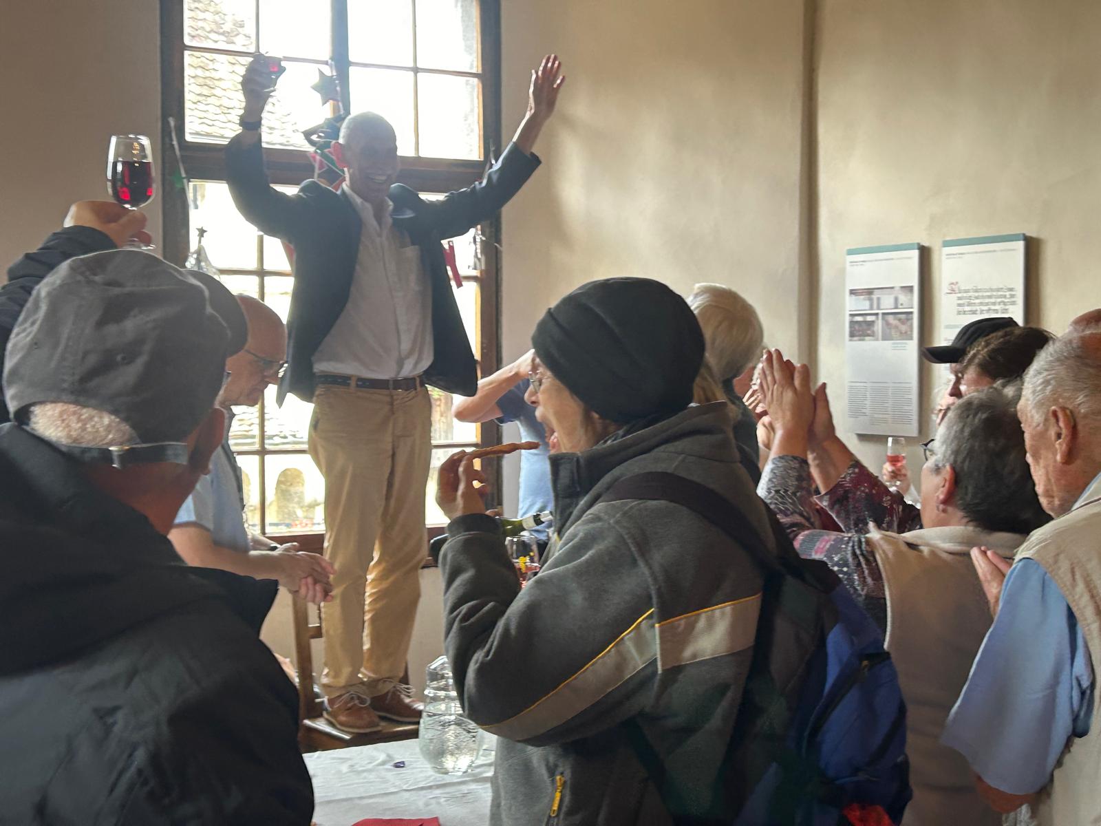 Und weil das Schloss heute nicht mehr von Feinden umzingelt ist, sondern von einem der berühmtesten Weinbaugebiete der Westschweiz, gab es zum Schluss einen wunderbaren Apéro mit einem Glas Chasselas, offeriert vom Gemeinderat. Dabei wurde nicht nur aufs Leben angestossen, sondern auch auf den Geburtstag von Roger.