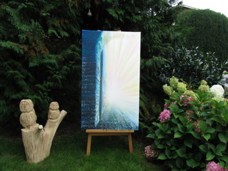 2. Bild Tor der Hoffnung 120x70cm Acryl mit Modelliermasse (mein Lieblingsbild) Hoffnung auf das Licht, auf das Ende des Tunnels, durch das Tor schreiten in das helle Licht… mein Lebensweg.